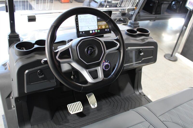 Apple CarPlay & Android Auto, 10.1 Inch Display, 4 Wheel Hydraulic Brakes, Integrated Turn Signals, Extended Roof Top, Premium Seats, NFC Touch Switch Sound Bar System, Tilt Steering, Floor Mats, 5KW AC Electric Motor by Denago, Powder-Coated Alum. Chassis with 2.5" Lift, On-board Lithium Quick Charger, Four Wheel Disc/Electromagnetic Brakes, 14-inch Aluminum wheels with 23x10-14 DOT Approved Tires, USB/USB-C PD Ports 110V AC Outlet, Rear Camera, Cart Specs: 118in x 49in x 80in, 25 MPH Speed with a 40 Mile Range, 51.2V 105Ah LiFePo4 Lithium Battery