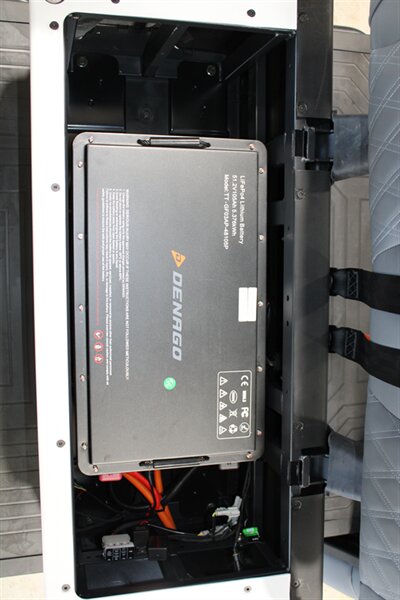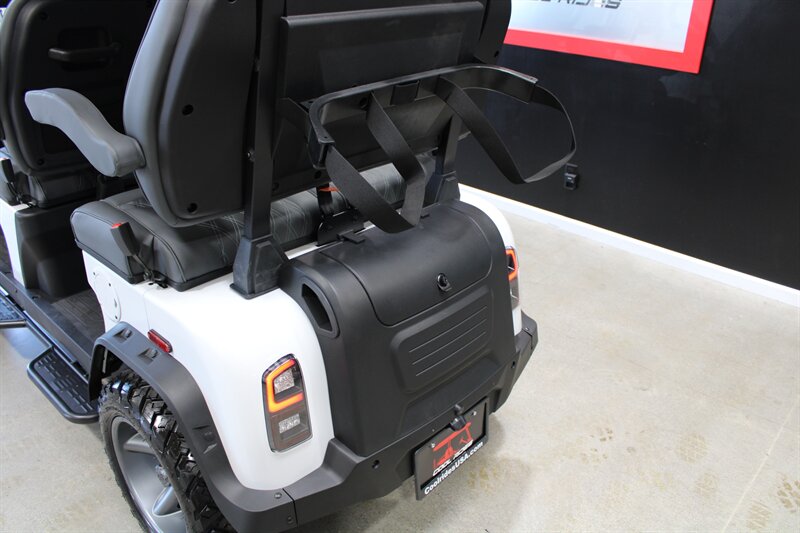 Apple CarPlay & Android Auto, 10.1 Inch Display, 4 Wheel Hydraulic Brakes, Integrated Turn Signals, Extended Roof Top, Premium Seats, NFC Touch Switch Sound Bar System, Tilt Steering, Floor Mats, 5KW AC Electric Motor by Denago, Powder-Coated Alum. Chassis with 2.5" Lift, On-board Lithium Quick Charger, Four Wheel Disc/Electromagnetic Brakes, 14-inch Aluminum wheels with 23x10-14 DOT Approved Tires, USB/USB-C PD Ports 110V AC Outlet, Rear Camera, Cart Specs: 118in x 49in x 80in, 25 MPH Speed with a 40 Mile Range, 51.2V 105Ah LiFePo4 Lithium Battery